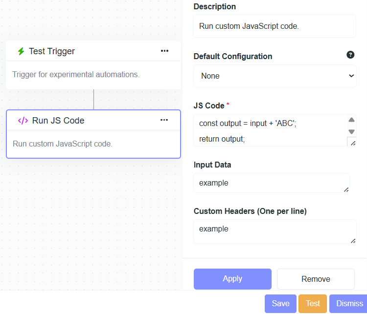 - Description: Run custom JavaScript code.